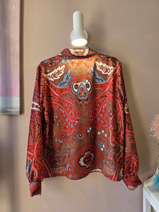 Camicia blusa in satin paisley con cravattino