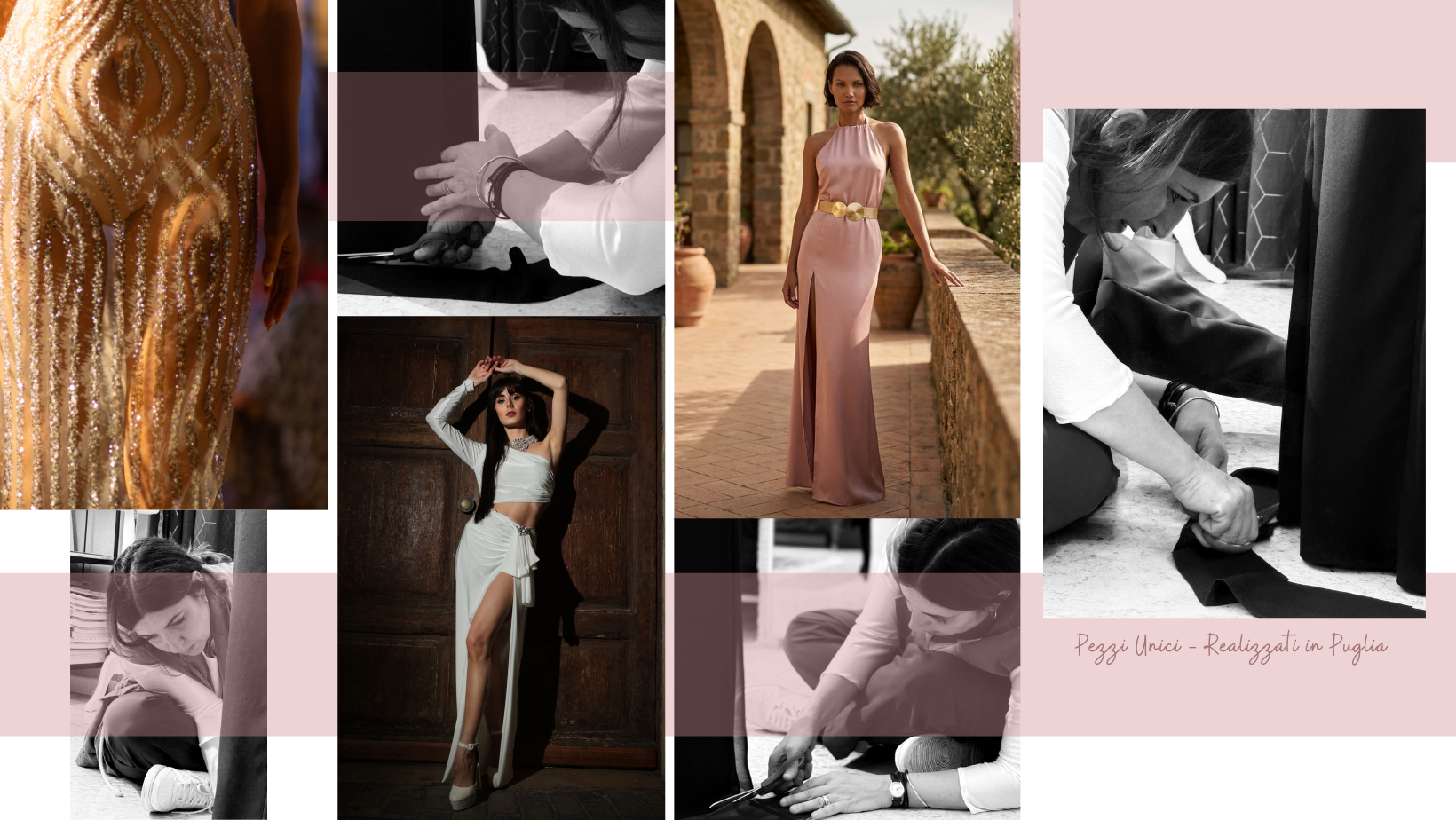 Tutto è creato nel mio atelier a Monopoli, con lavorazioni artigianali e cura dei dettagli couture.