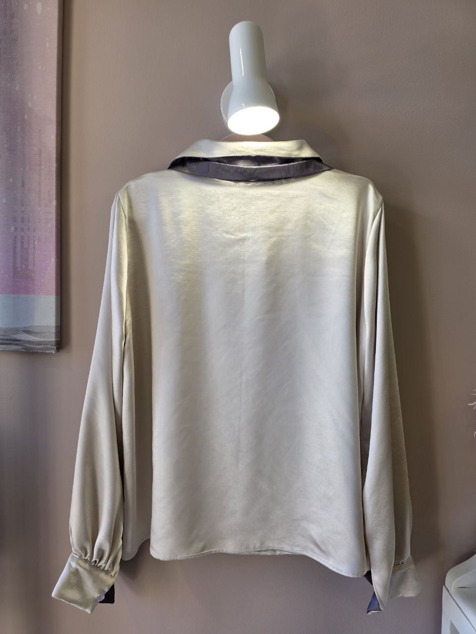 Camicia blusa elegante in seta ghiaccio con cravattino a contrasto