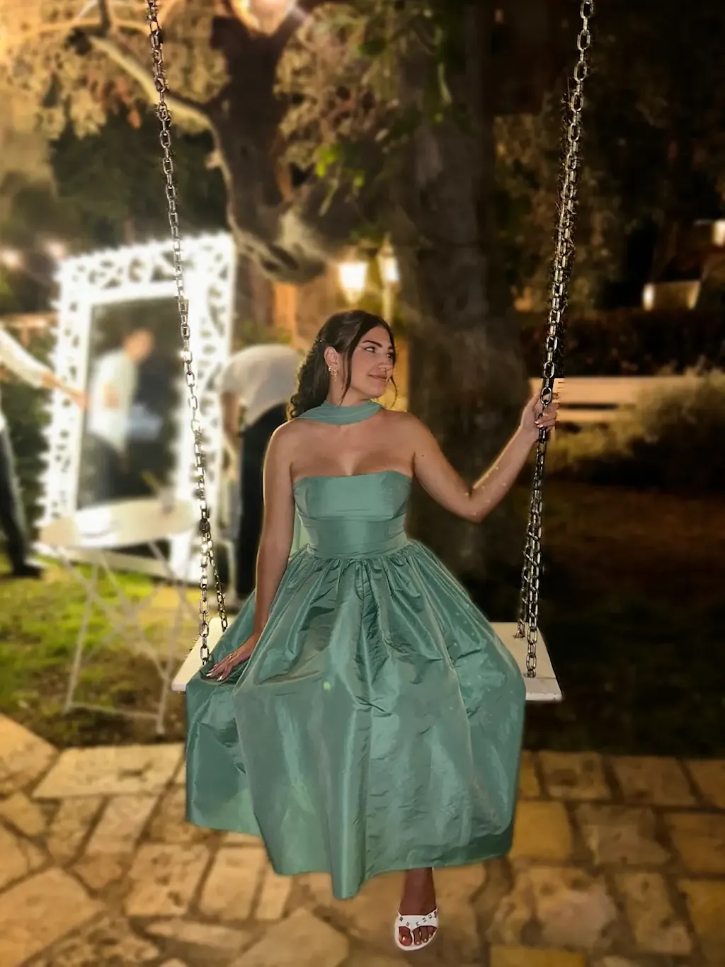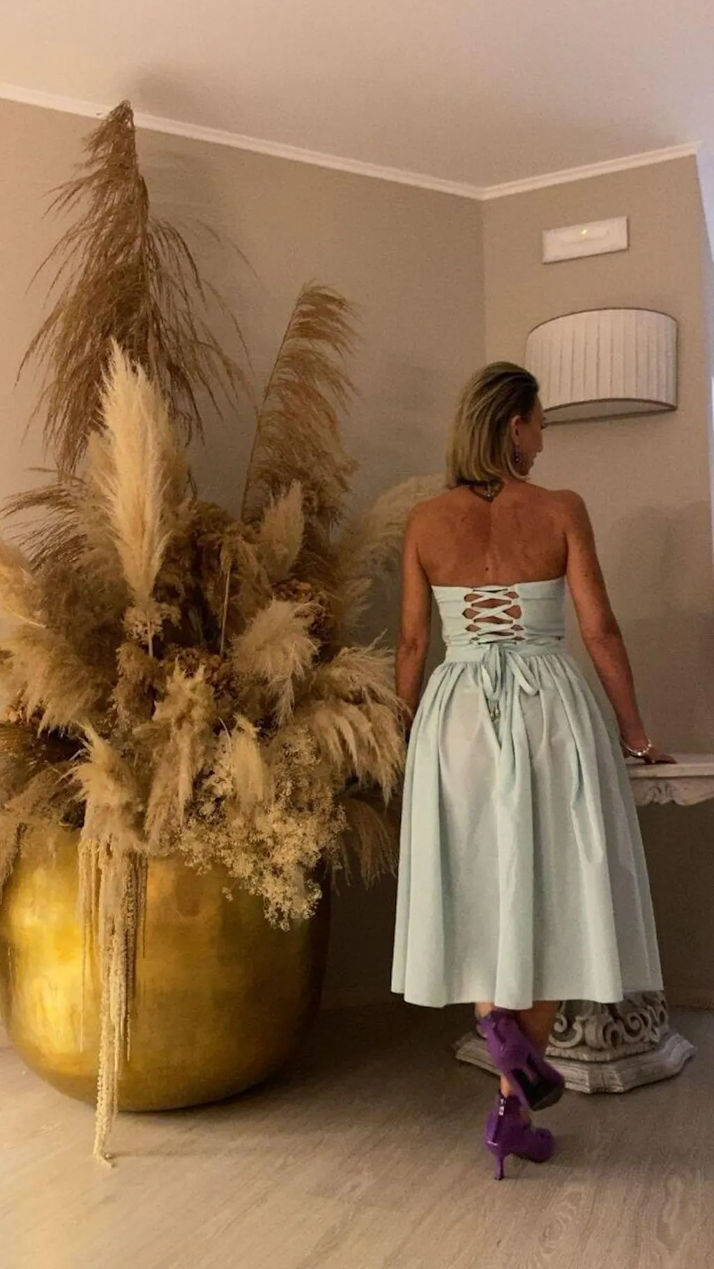 56. Set completo due pezzi - bustier e gonna in taffetà verde acqua - PREORDINA