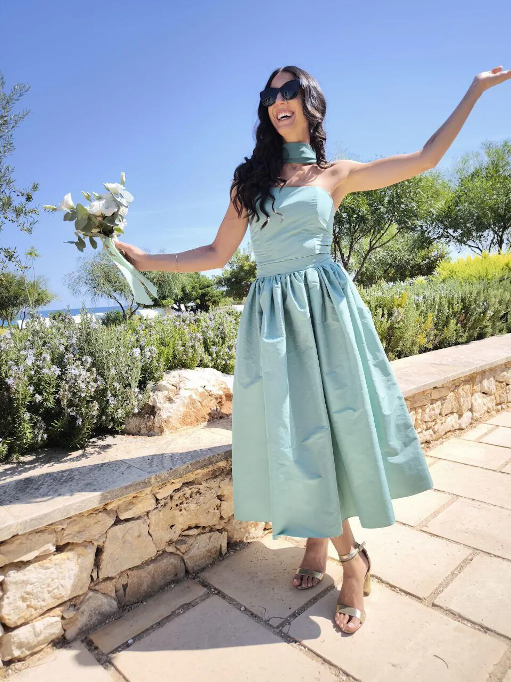 Non solo ha creato abiti stupendi, curati nei minimi dettagli — dai tessuti alle forme — ma ho scoperto in lei un’anima dolce, sempre disponibile… e, ovviamente, un tornado di simpatia ed energia positiva.