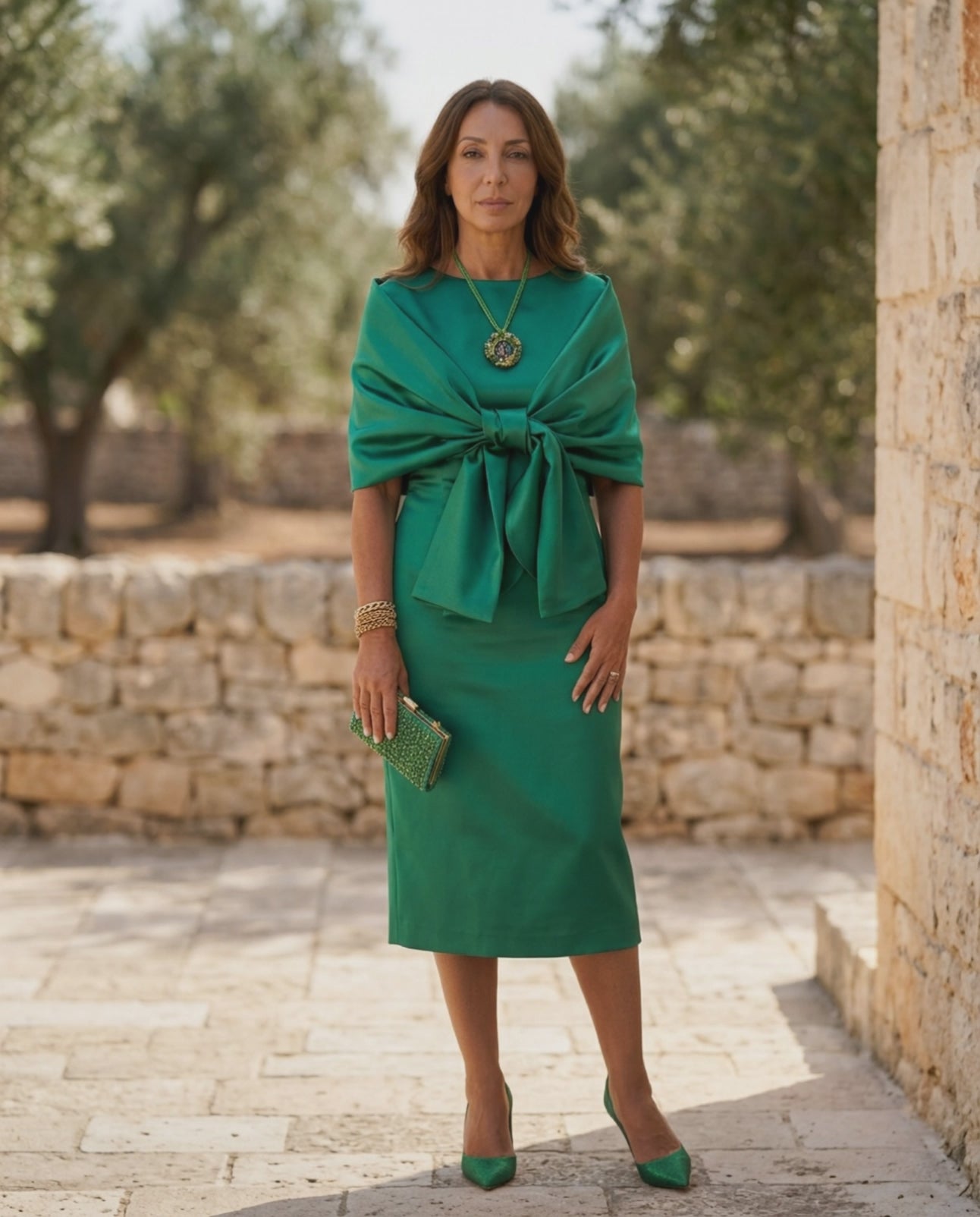 57. Set completo mamma sposo sposa tubino e maxi stola verde menta - PREORDINA